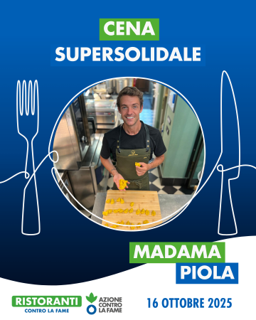 Se anche tu pensi che ogni persona abbia diritto ad una vita libera dalla fame, sostieni “Azione Contro la Fame” scegliendo ora una cena Super Solidale. Con il tuo contributo ci aiuterai a sostenere i nostri progetti “Mai più Fame” in Italia e nel mondo.