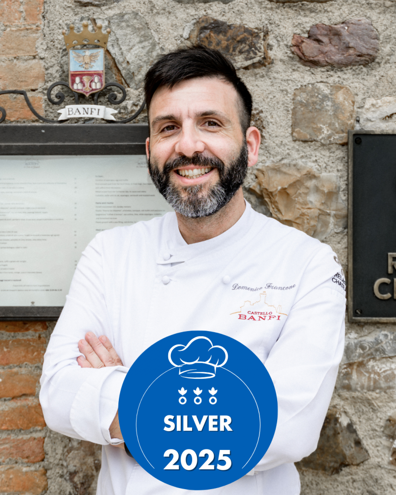 L'emozione inizia chilometri prima di arrivarci, guidando tra vigneti, cipressi e ulivi, nella più tipica campagna toscana, una cartolina che culmina con l'arrivo all'imponente Castello Banfi, di origini medioevali, che si erge maestoso davanti al ristorante. Le viti affrescate nelle sale interne ne chiariranno il nome, ma, appena il tempo lo consente, cenare in terrazza sarà un'esperienza indimenticabile, per il panorama, la qualità del servizio e ovviamente la cucina. Lo chef Domenico Francone è di origini pugliesi e dalla sua regione porta qualche stuzzicante contributo, dai taralli ai piccoli ma squisiti panzerotti. Ha tuttavia abbondantemente sposato la cucina toscana, spesso maremmana, che interpreta con creatività, rivedendone in modo personale alcuni dei più celebri classici. Un esempio? Tortelli maremmani a modo mio…ricordo della domenica! Dalla cantina, tra le proposte del bravissimo sommelier, ovviamente anche i grandi Brunelli di Castello Banfi. [Fonte: Guida Michelin]